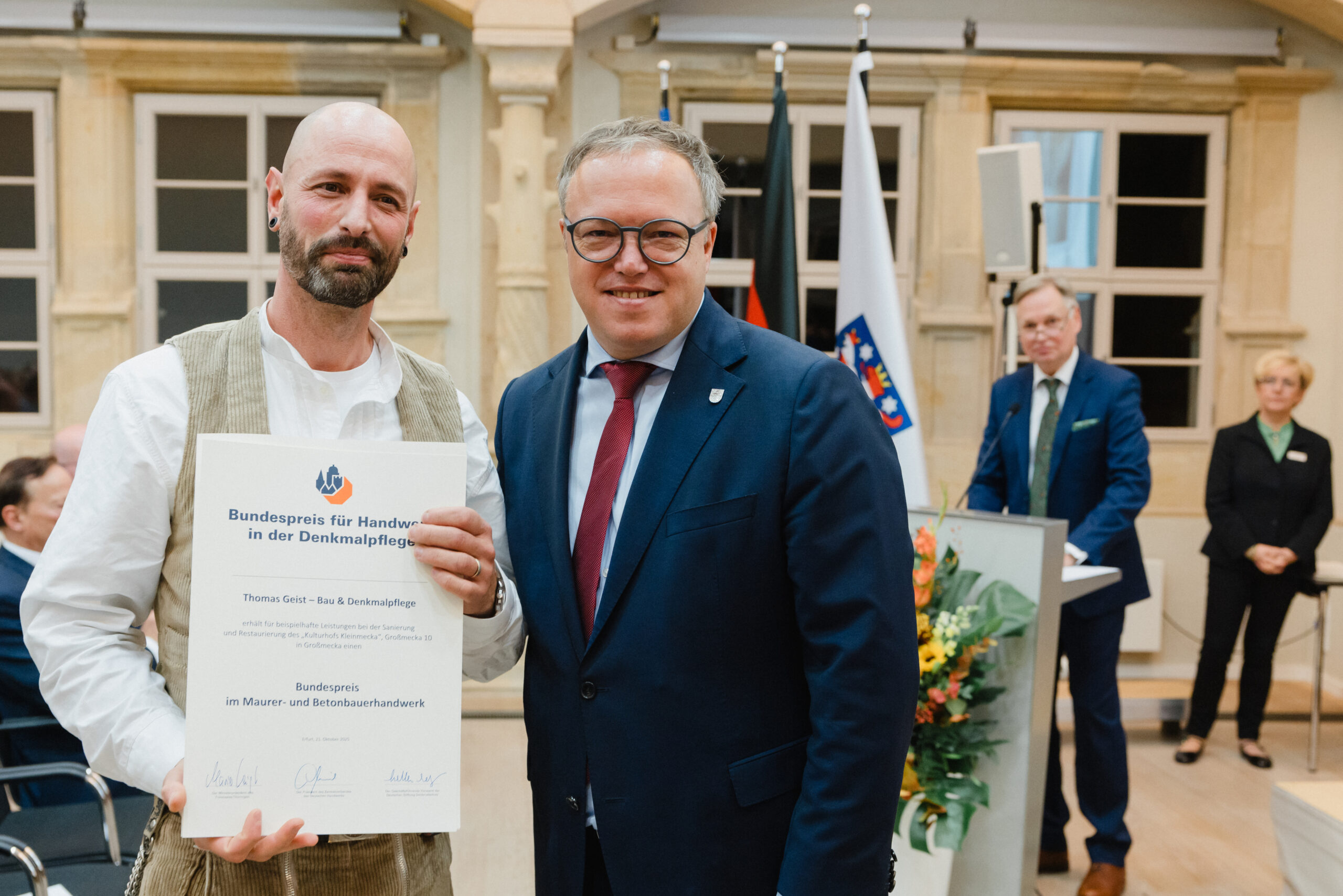 36 Handwerksbetriebe aus Thüringen, darunter auch Huke & Söhne – Zimmerei und Treppenbau Ralf und Gert Huke GbR, wurden für ihre Arbeit bei der Restaurierung und Bewahrung historischer Bausubstanz ausgezeichnet.